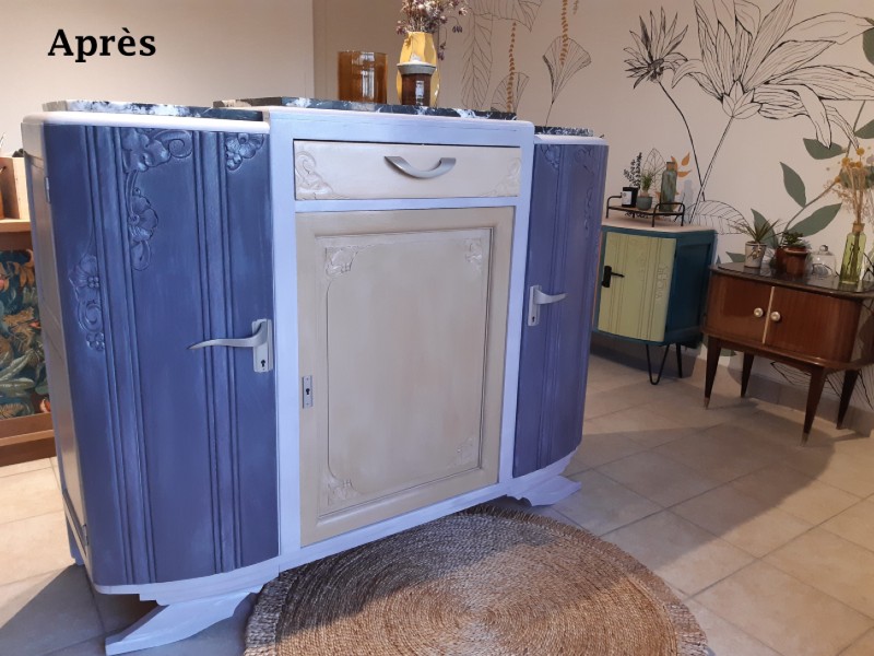 Un de mes relookés dispo vous fait de l’œil, un coup de cœur…Alors, ce meuble unique n’attendait que vous pour passer sa deuxième vie dans votre intérieur !